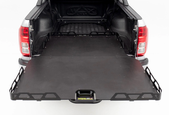 The ultimate solution for easy access to the contents of your Mitsubishi Triton MV Tub. Easily operated via a simple handle with multiple latching positions and a purpose built side rail. Built using heavy-duty steel and topped with a precision cut platform to wrap around the wheel arches. Compatible with Canopies.